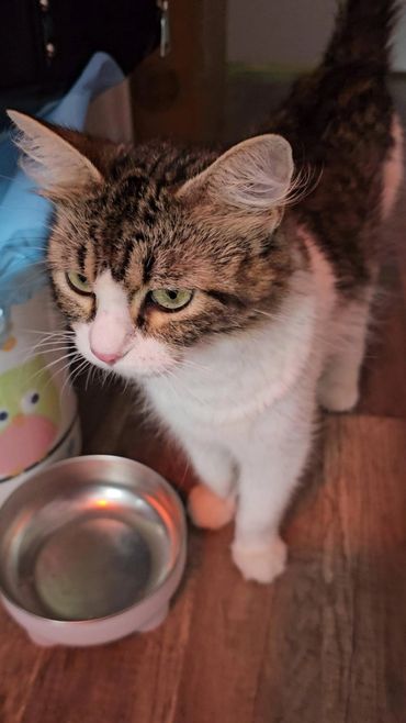 This beautiful 1-year-old female is full of personality and charm. She has just finished weaning her kittens and will be ready for spaying soon. Recently treated with flea prevention and a dewormer, she’s in great health and ready for her forever home.